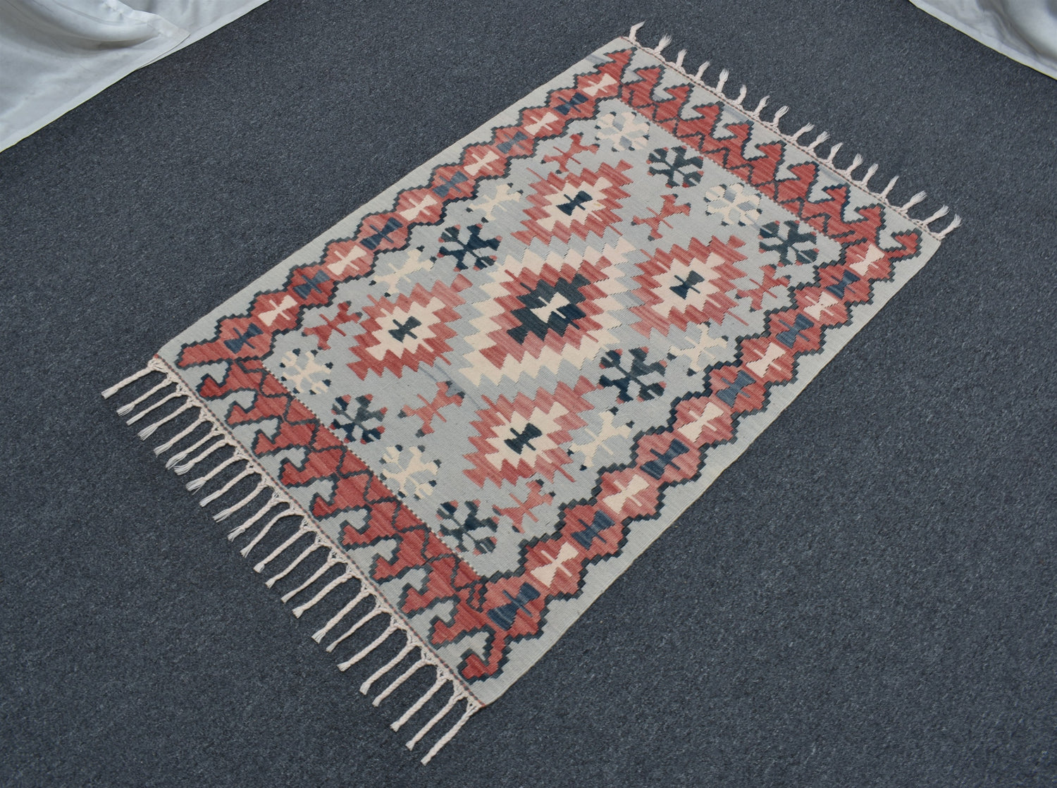 Antika El Dokuma Benzersiz İnce Yağcıbedir Balıkesir Yörük Yün Kilim 5369