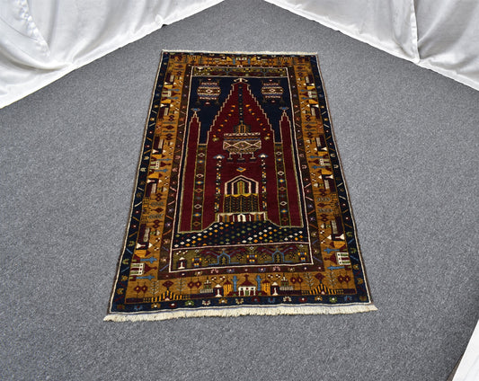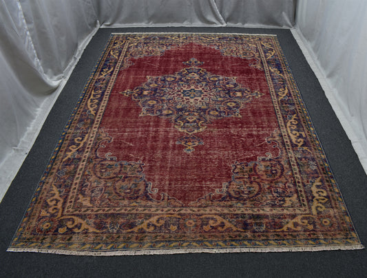 Antika 6.5m2 El Dokuma Kırmızı Lacivert Eskitme Lüks Göbekli Yün Salon Halısı 5643