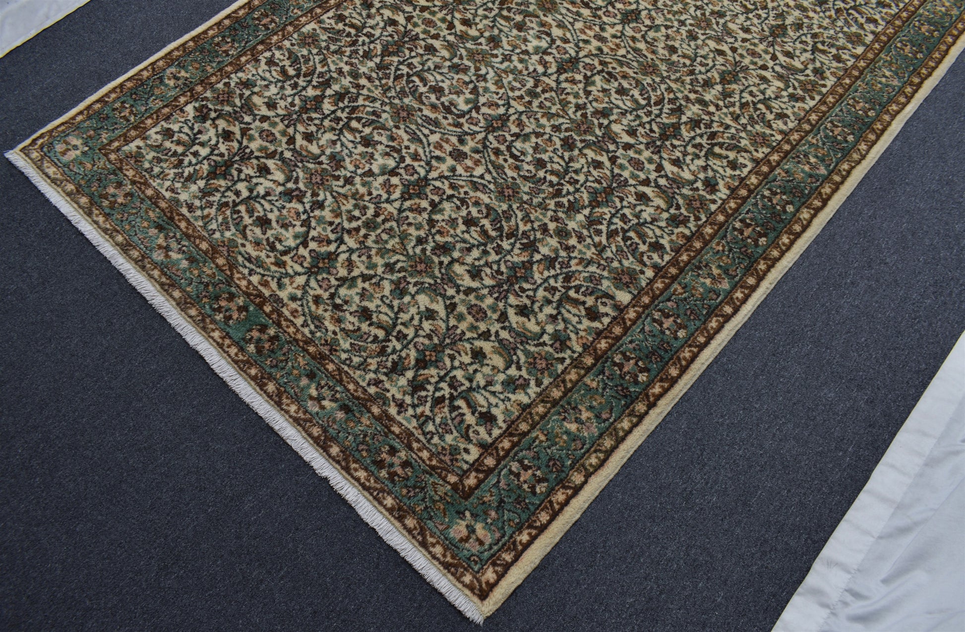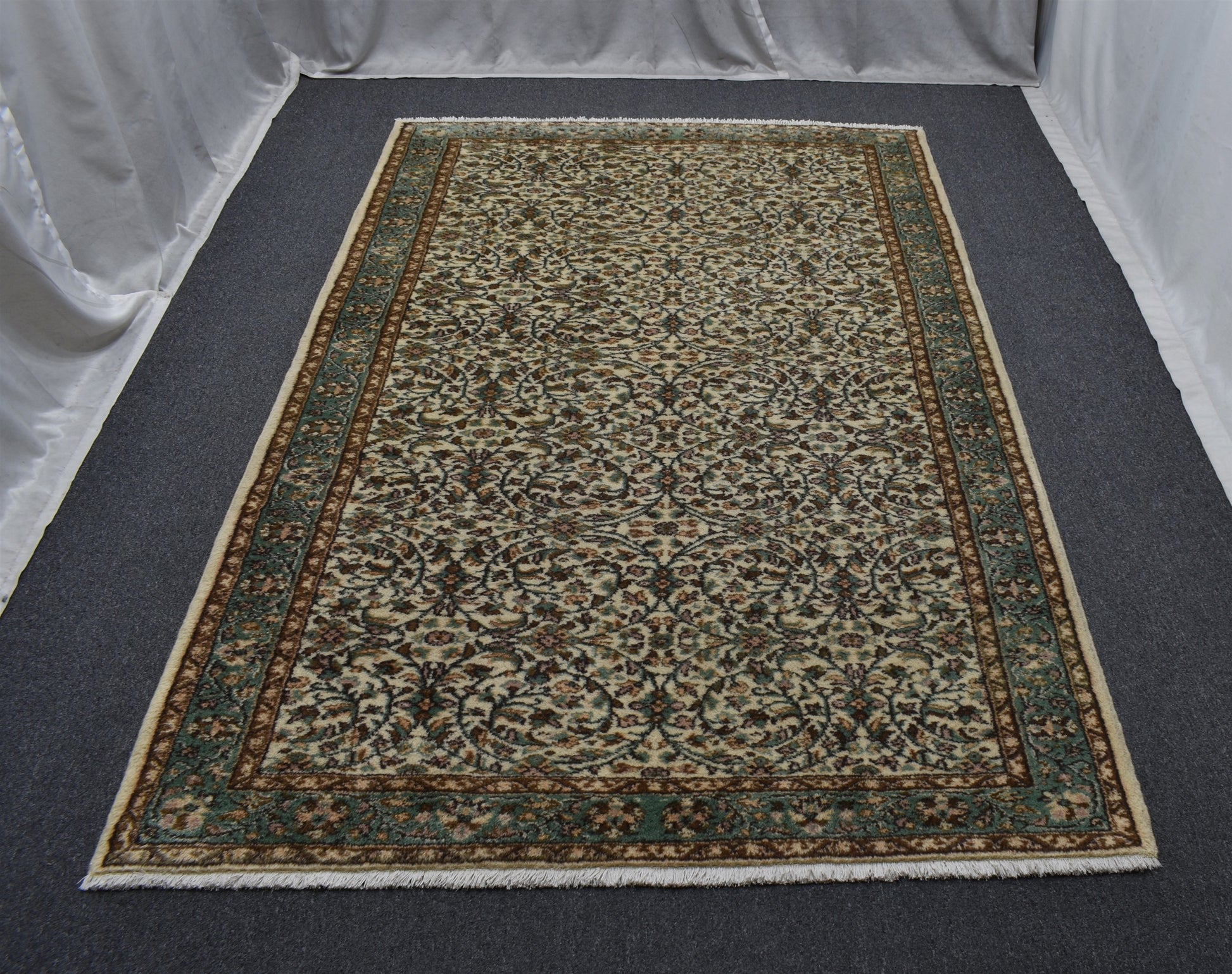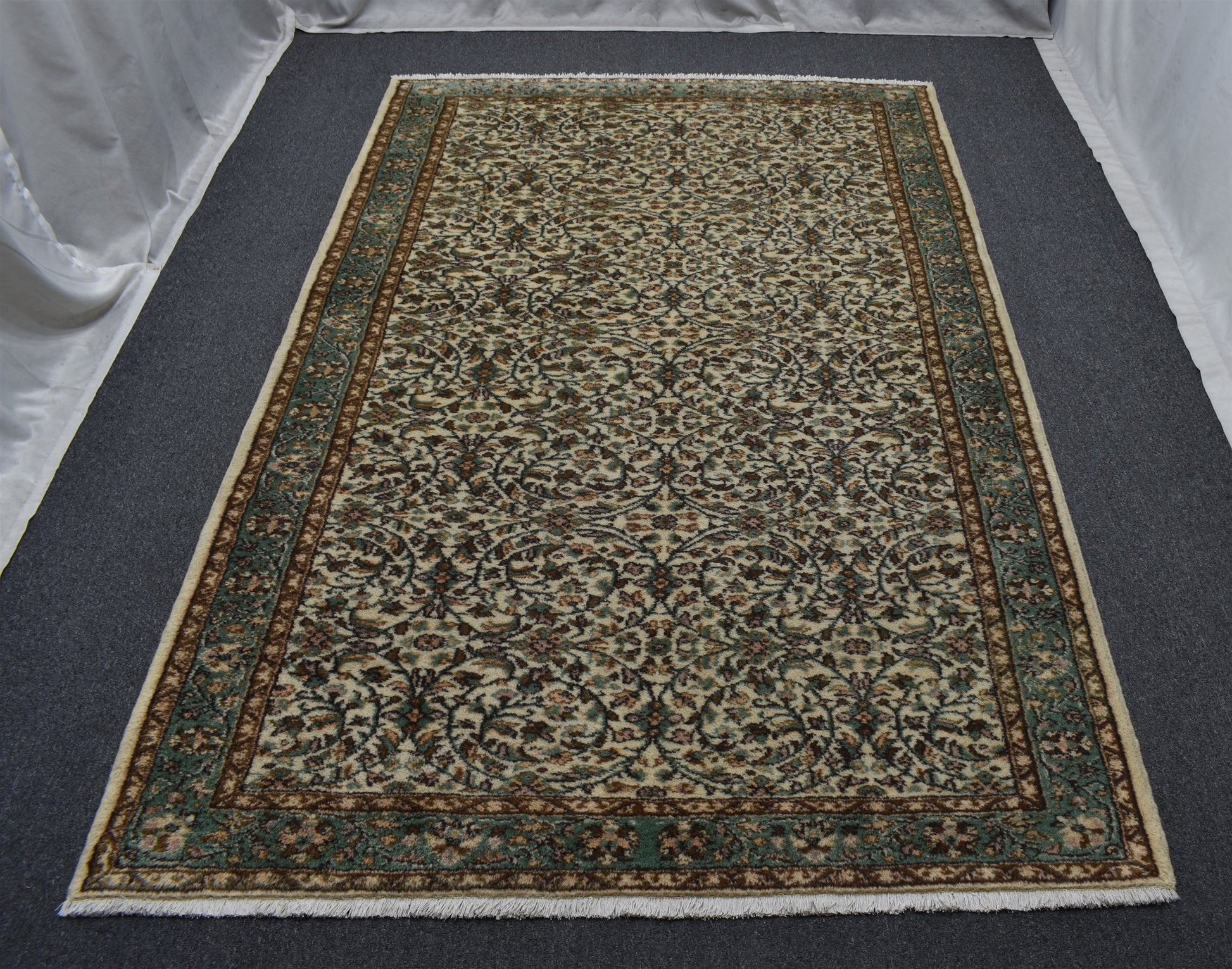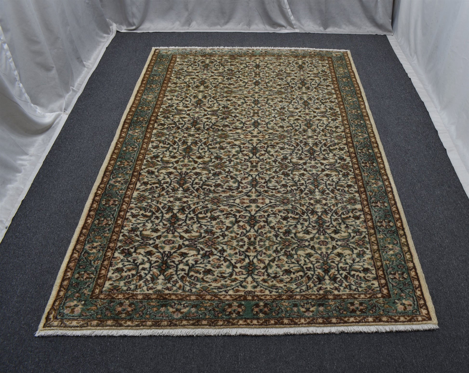 El Dokuma 5m2 Otantik Nadide Çiçekli Krem Bej Foça Yün Halı 6922