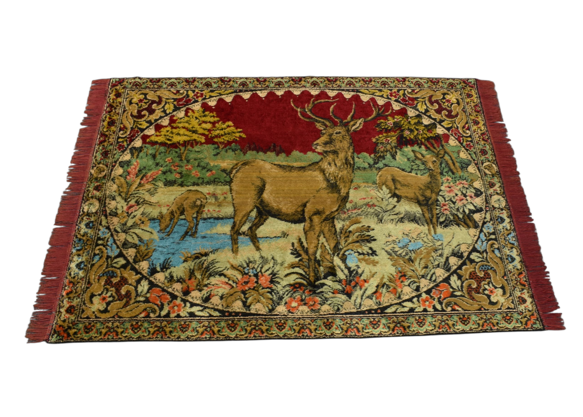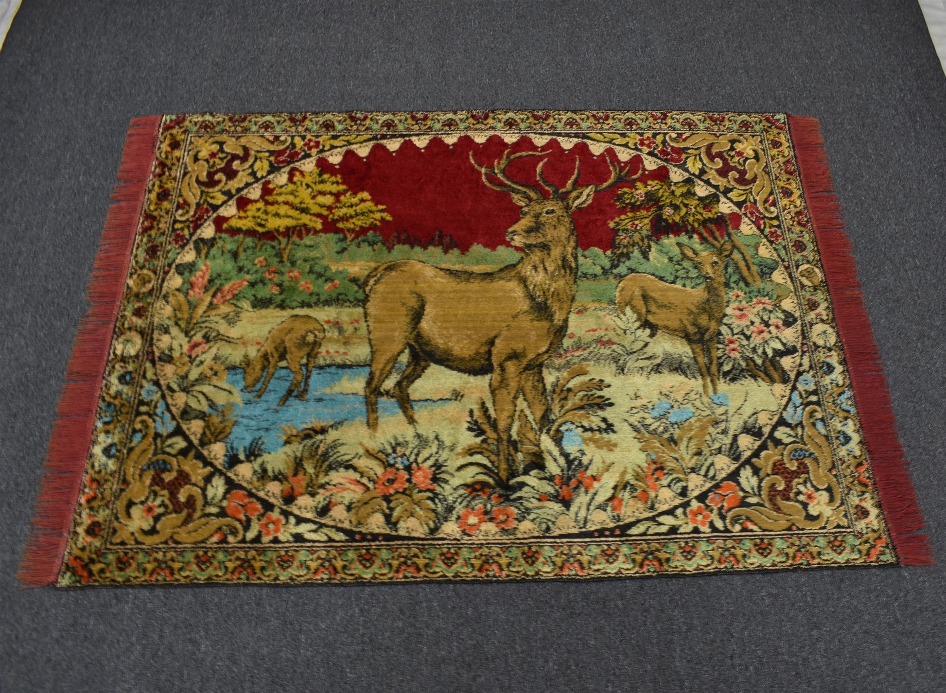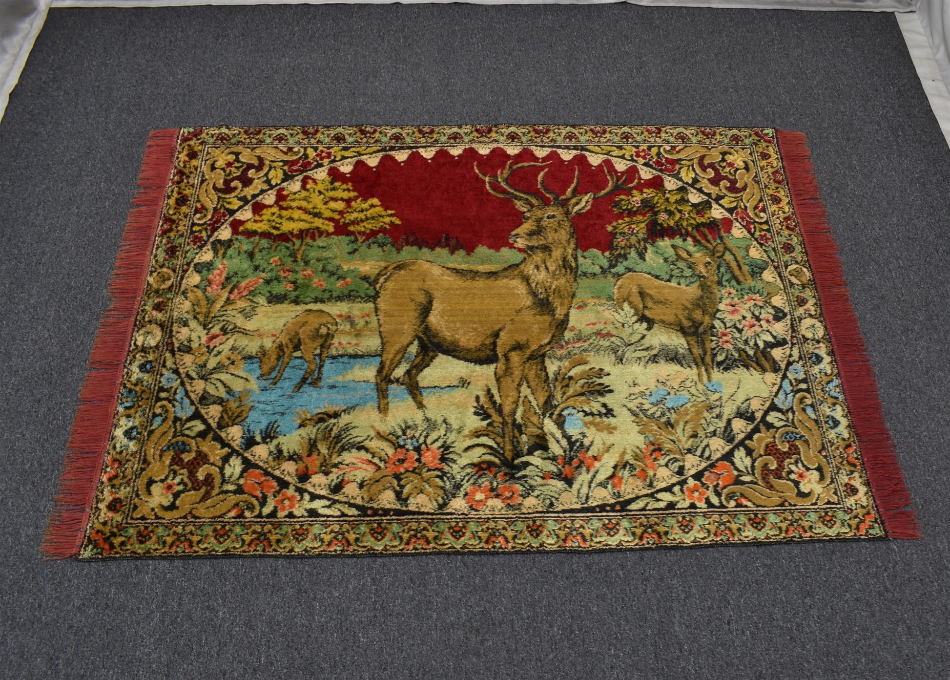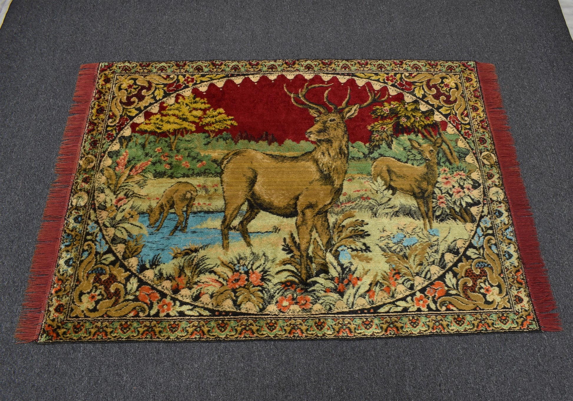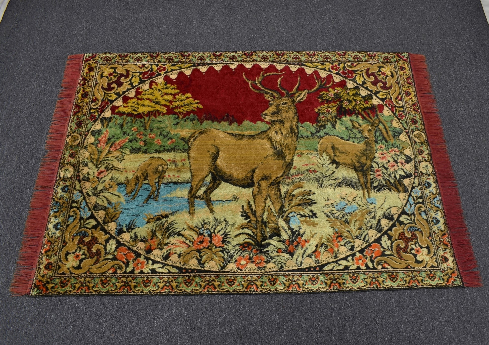 Vintage Benzersiz Doğa Tasvirli Geyikli Duvar Halısı 5897