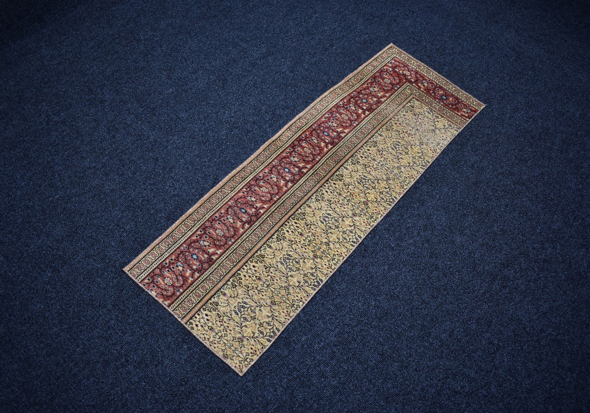 Vintage El Dokuma Çiçekli Bünyan Kayseri Mini Yolluk Yün Halısı 6723