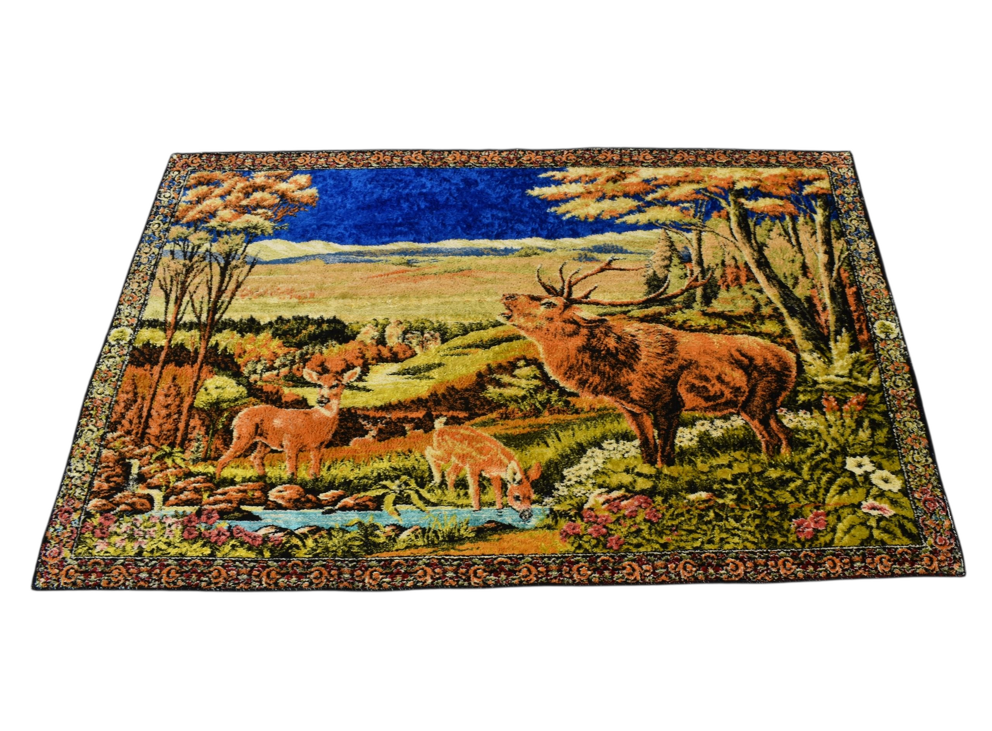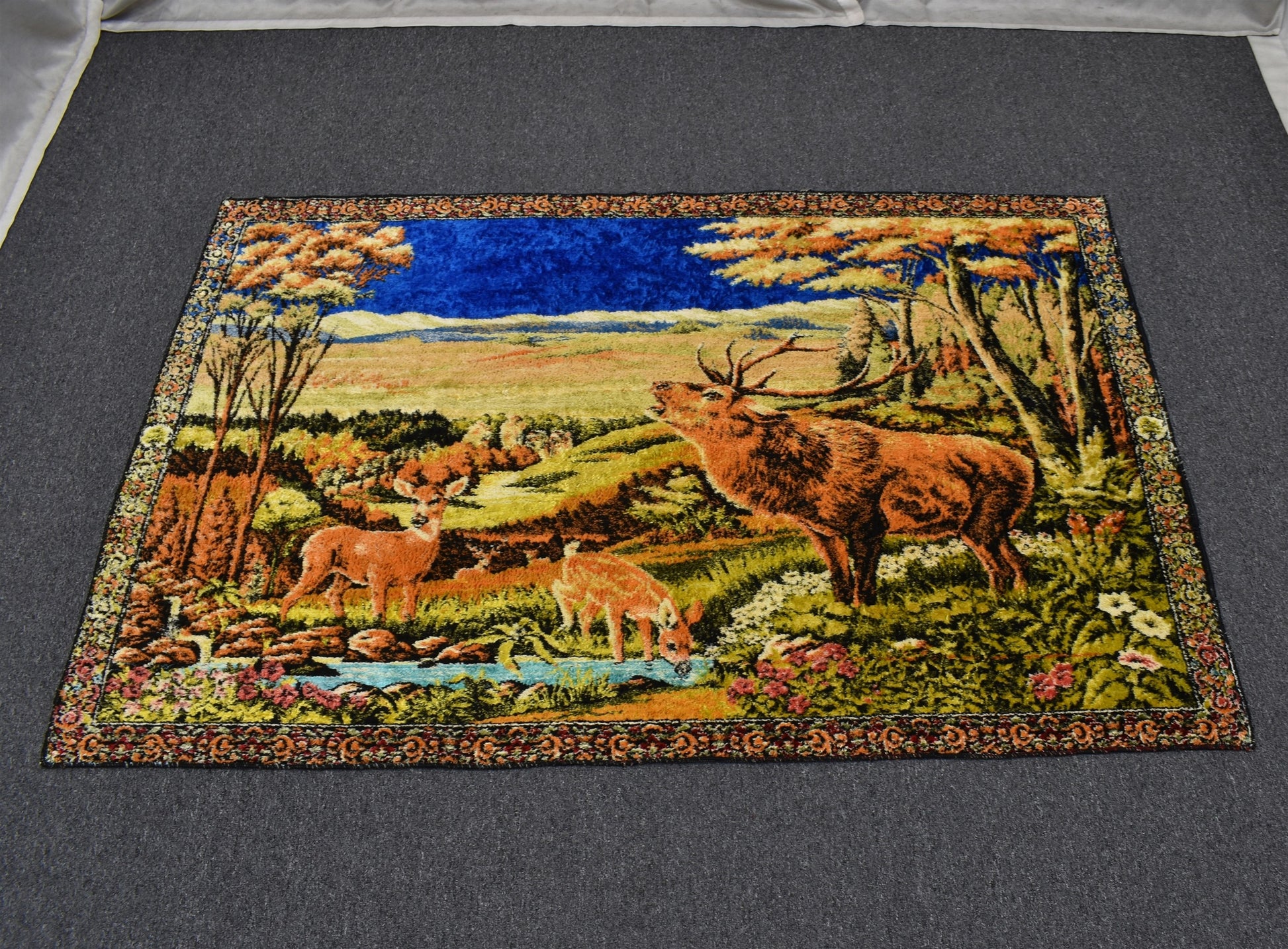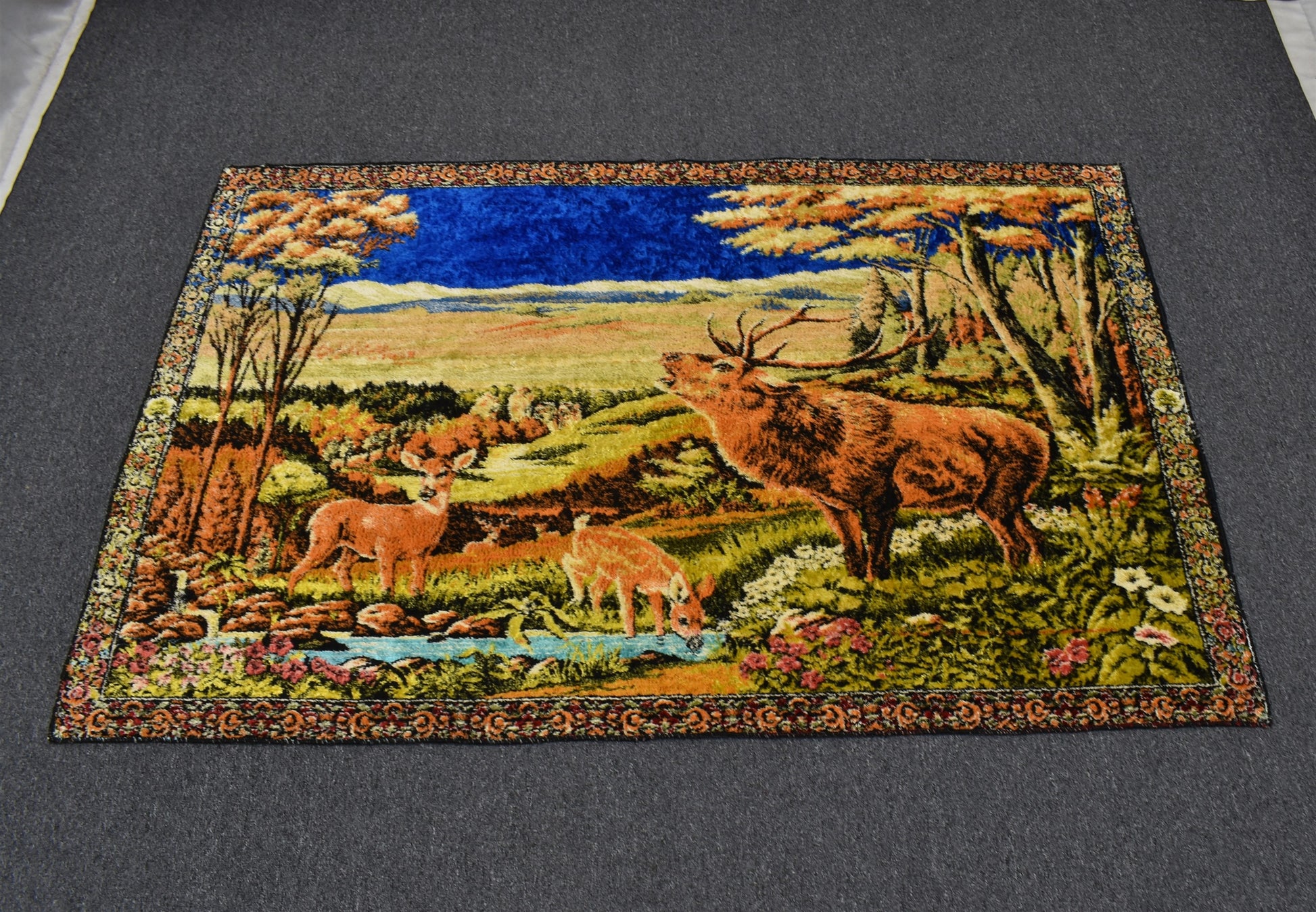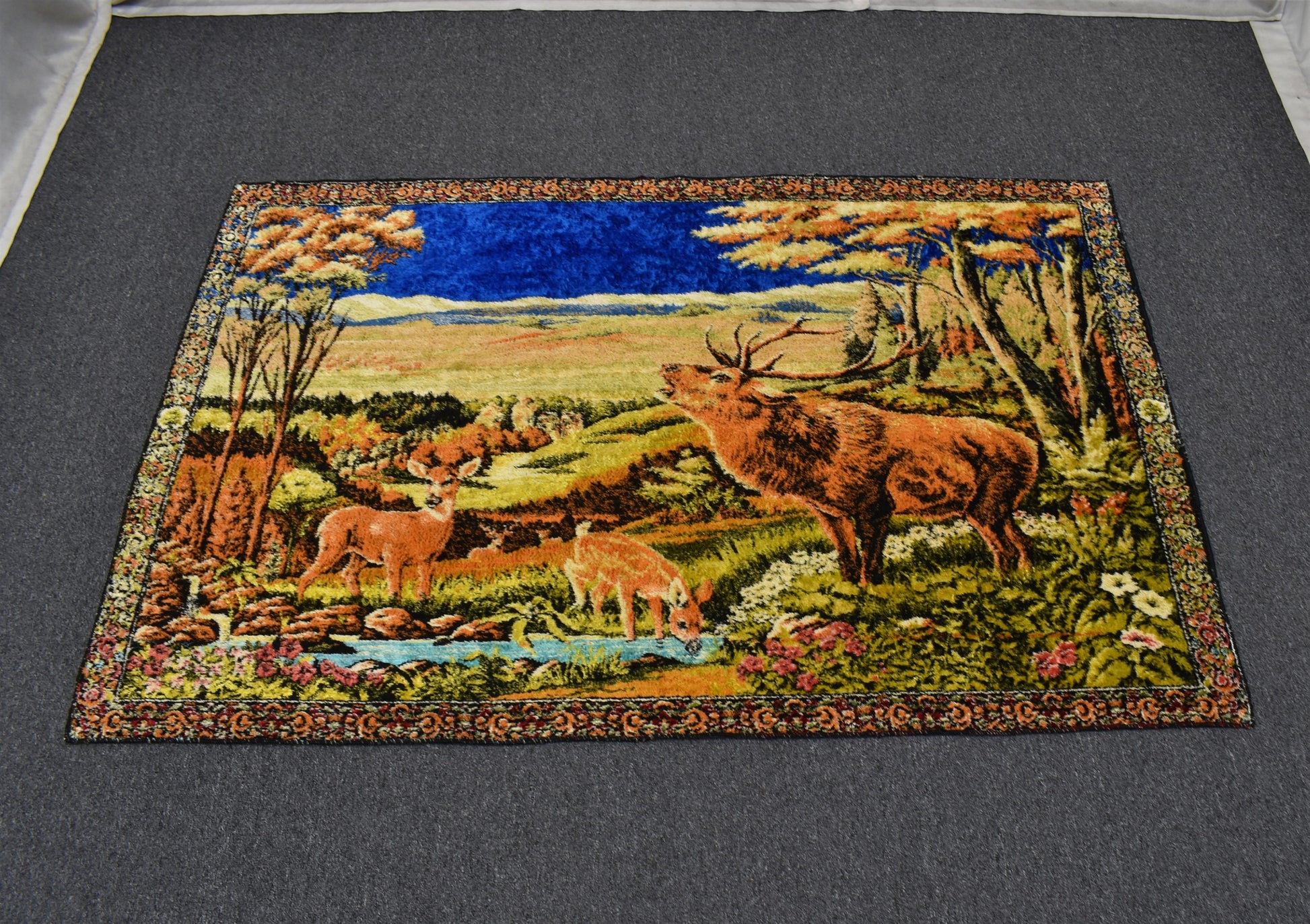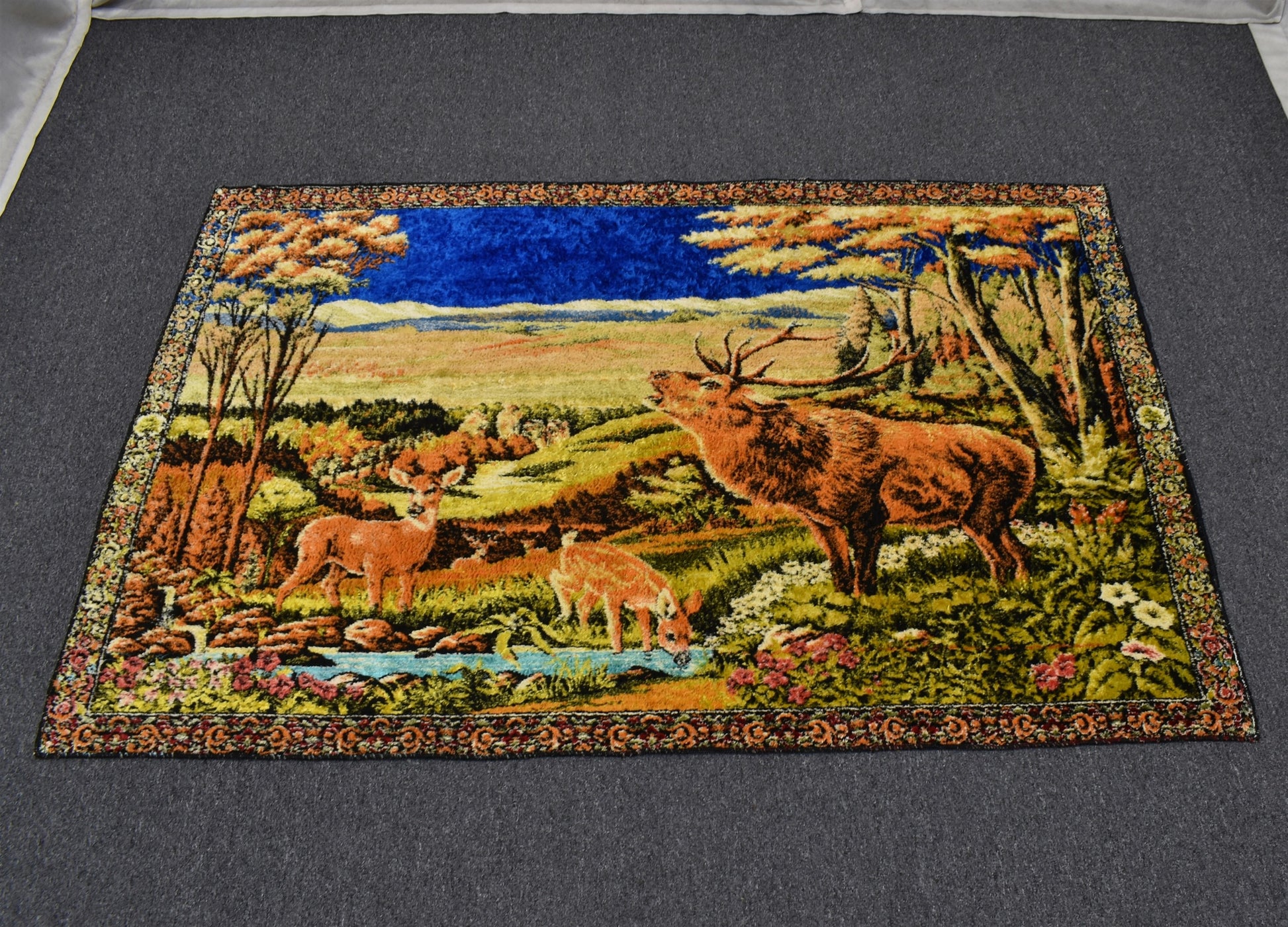 Vintage Zarif Doğa Tasvirli Geyikli Duvar Halısı 5902