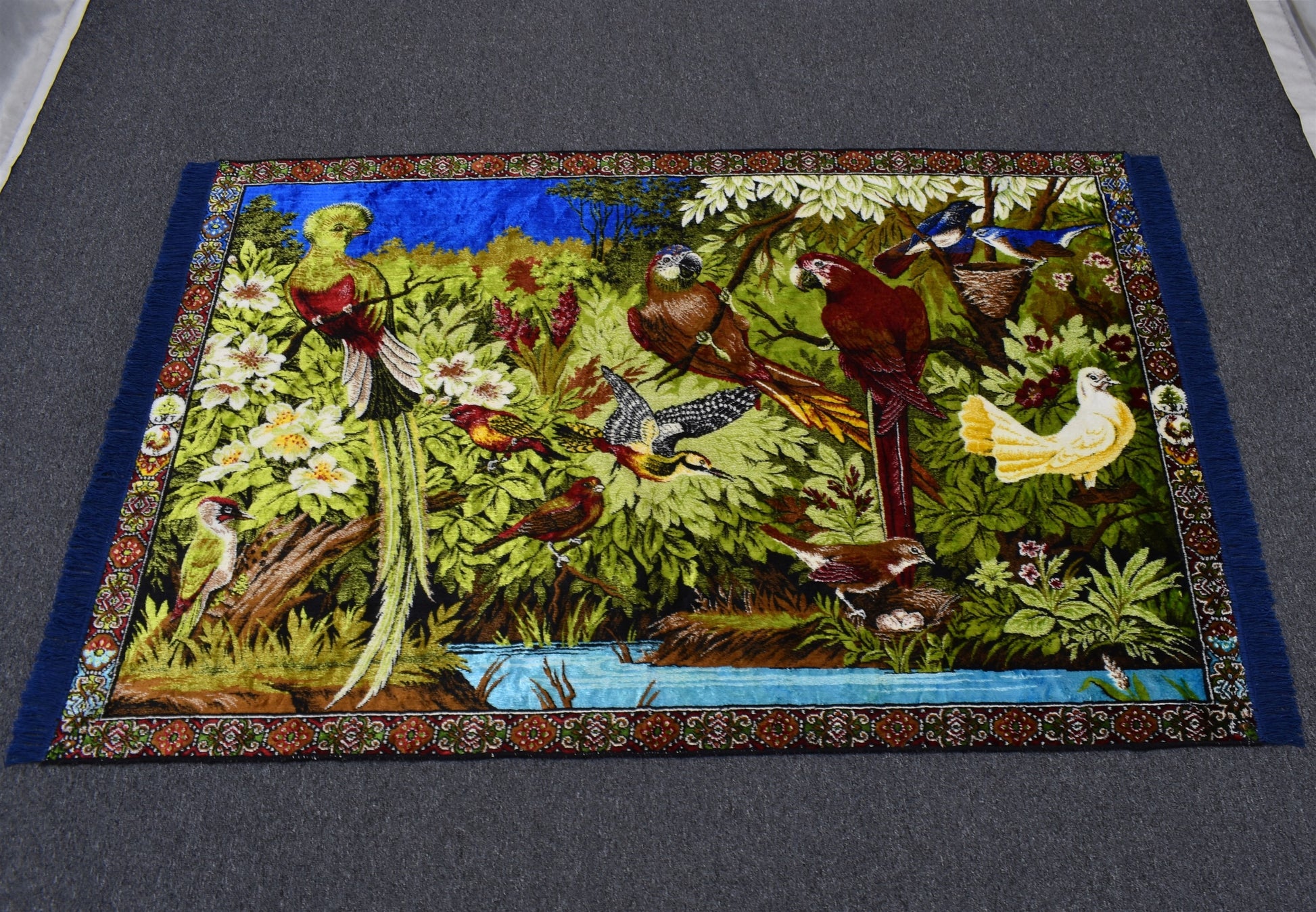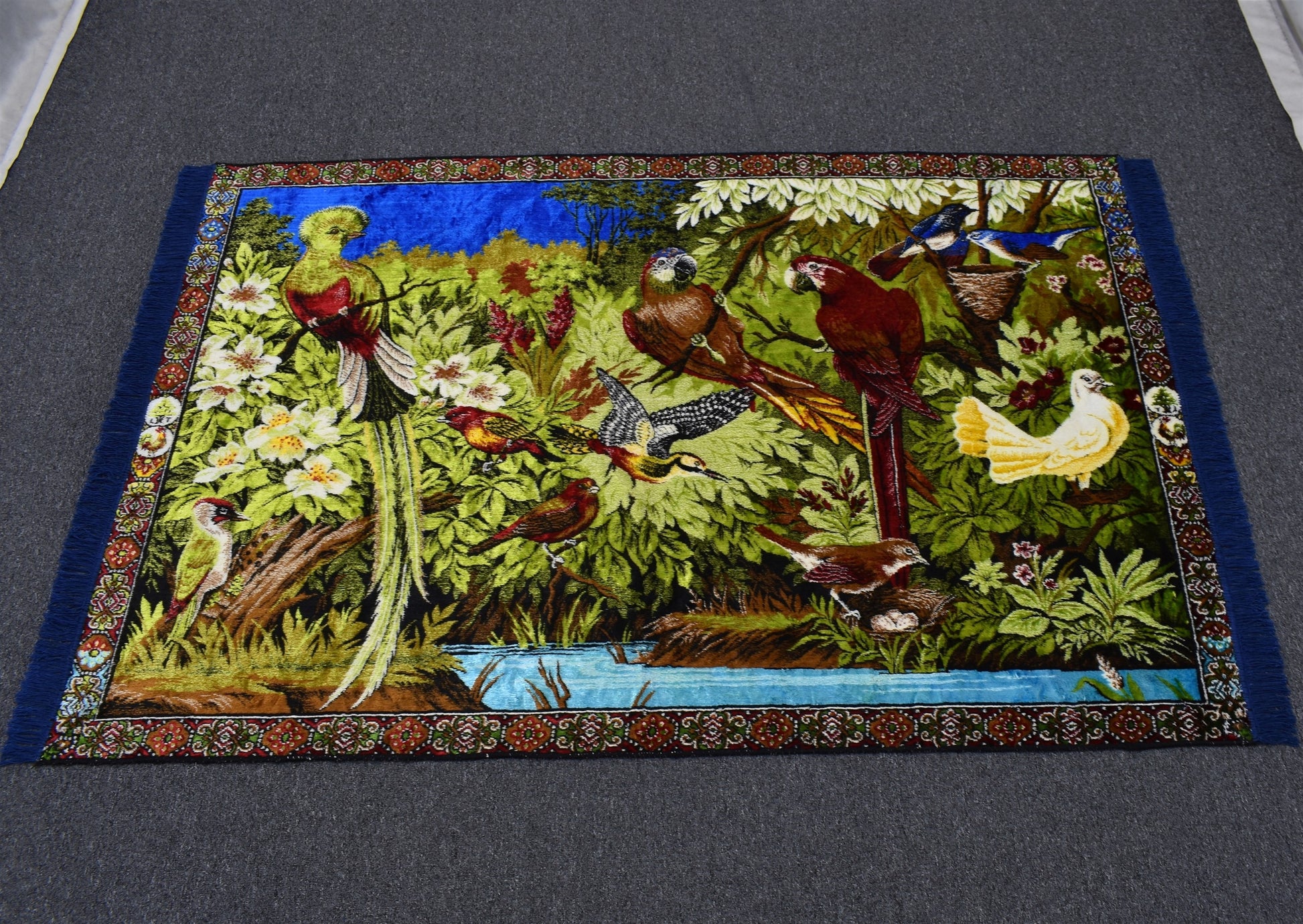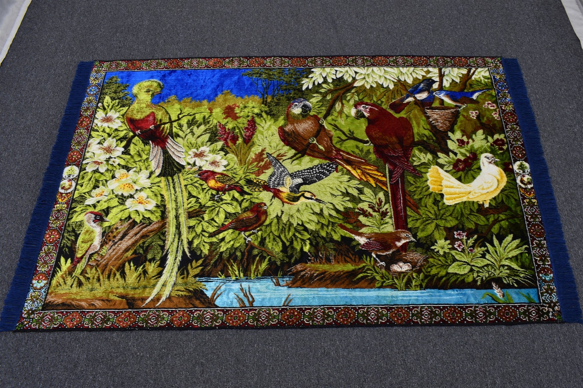 Yeni Nadir Orman Tasvirli Papağan Kuş Temalı Duvar Halısı 5914