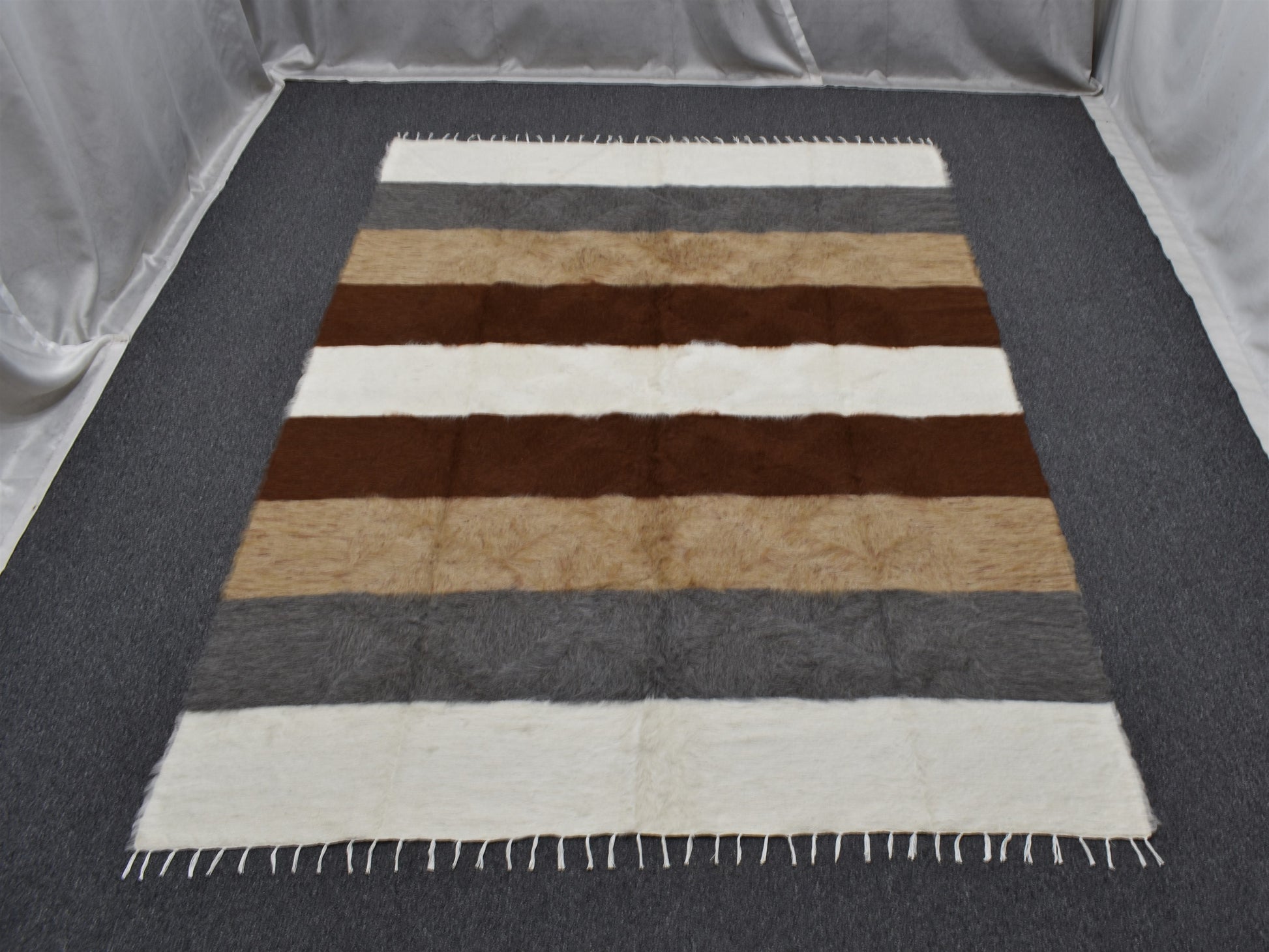 Yeni El Dokuma Çubuklu Dikişsiz Çift Kişilik Tiftik Yün Siirt Kilimi 6397